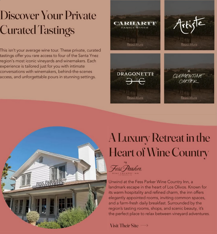 This is more than a wine tour. Over three unforgettable days, you’ll explore the vineyards, cellars, and stories of Santa Ynez’s most celebrated winemakers—all while enjoying private tastings, curated meals, and the luxury of the Fess Parker Wine Country Inn.